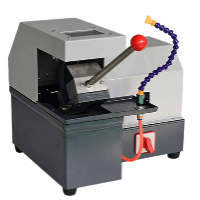 No processo de preparação de amostras metalográficas, o corte do material é o primeiro passo. Para obter amostras ideais com segurança, a máquina de corte utiliza um rebolo reforçado de alta velocidade e fatias finas.